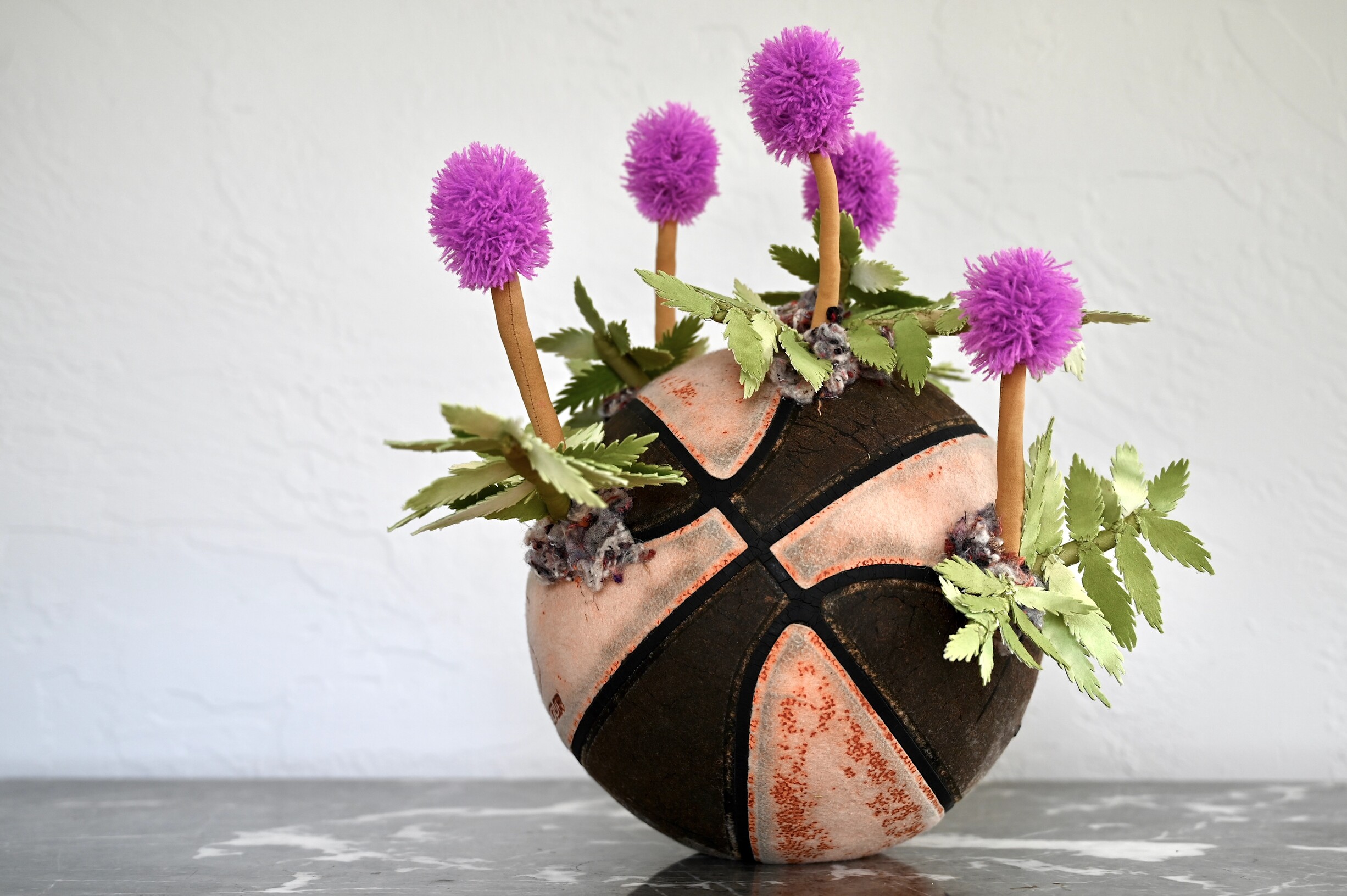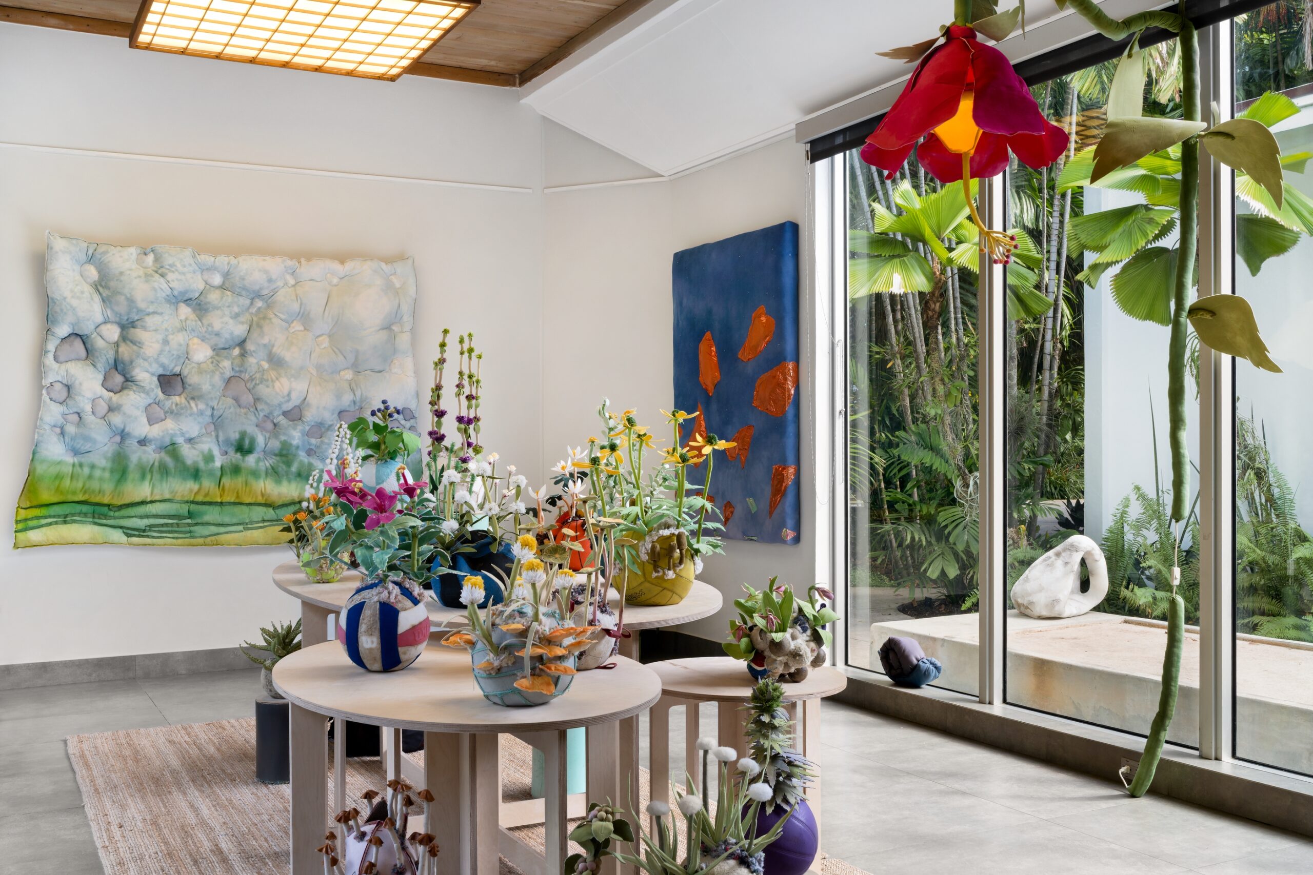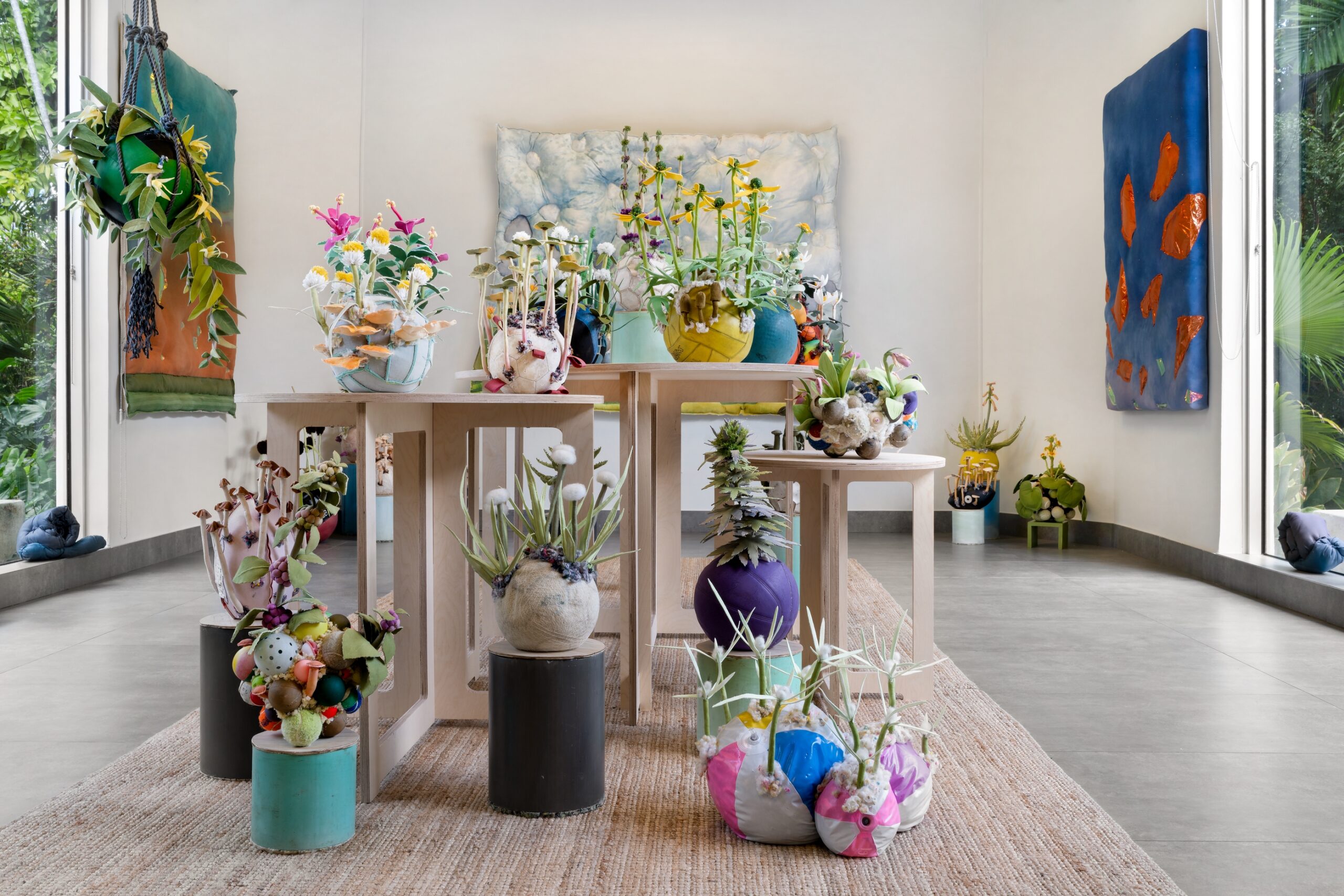 Operating from her home studio nestled within a 1937 art deco house in Hollywood, Florida, Alfonso’s creative process is deeply intertwined with her surroundings. Utilizing repurposed, hand-dyed fabrics, she crafts botanical soft sculptures reminiscent of healing plants, inviting viewers to contemplate the intrinsic connection between humanity and nature.