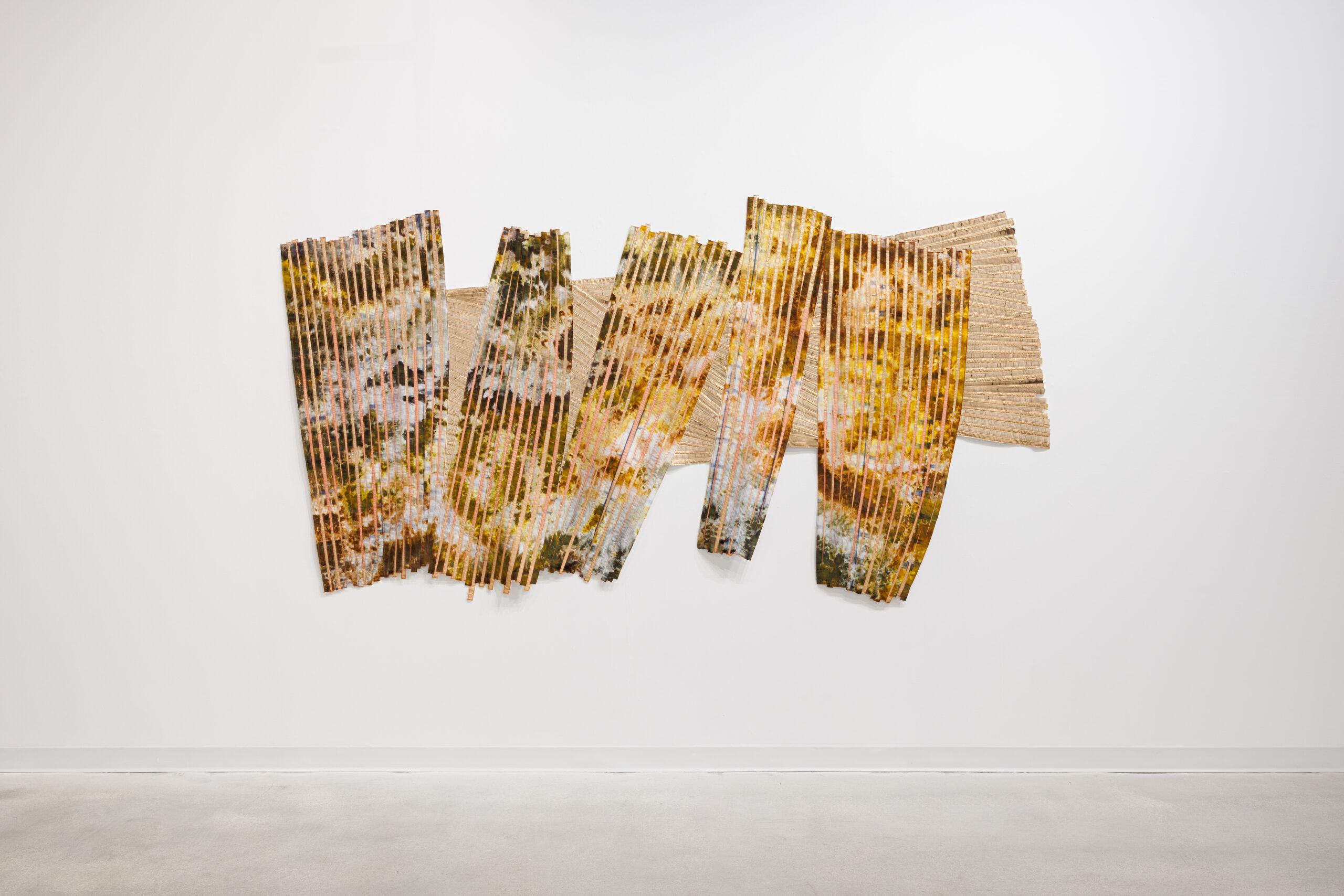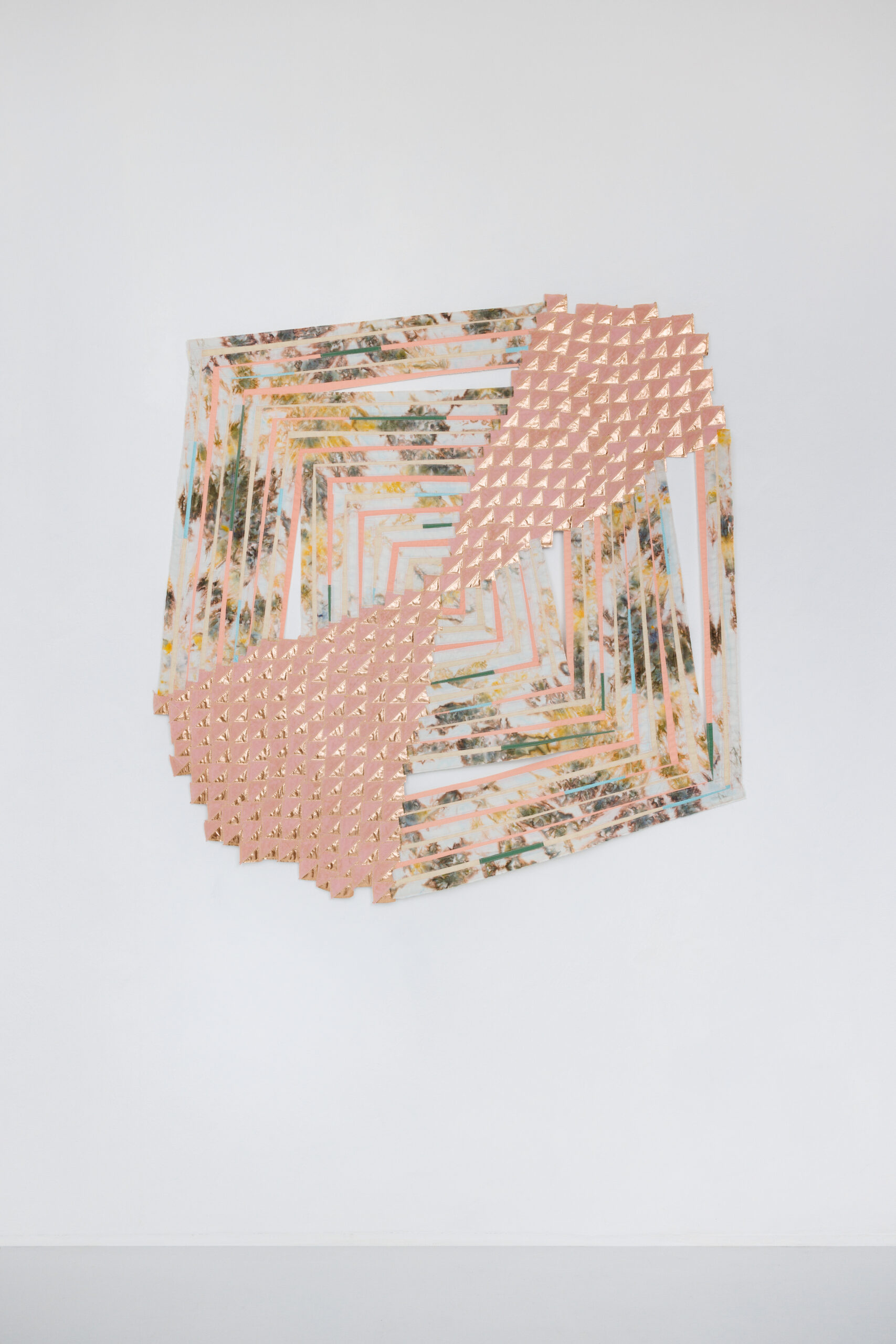 Miguel Arzabe’s paintings begin as distinct compositions that are physically cut and rewoven, collapsing the boundary between painting and object. His process introduces a structural rhythm that is both precise and improvisational, resulting in surfaces that feel at once constructed and fluid. Regina Durante Jestrow expands the legacy of quilt-making into a contemporary, painterly field, where hand-dyed and sourced textiles are layered and stitched into compositions that balance intuition with formal rigor. Jonathan Gonzalez approaches abstraction through dimensionality, creating sculptural wall works that translate architectural thinking into playful, tactile compositions.
