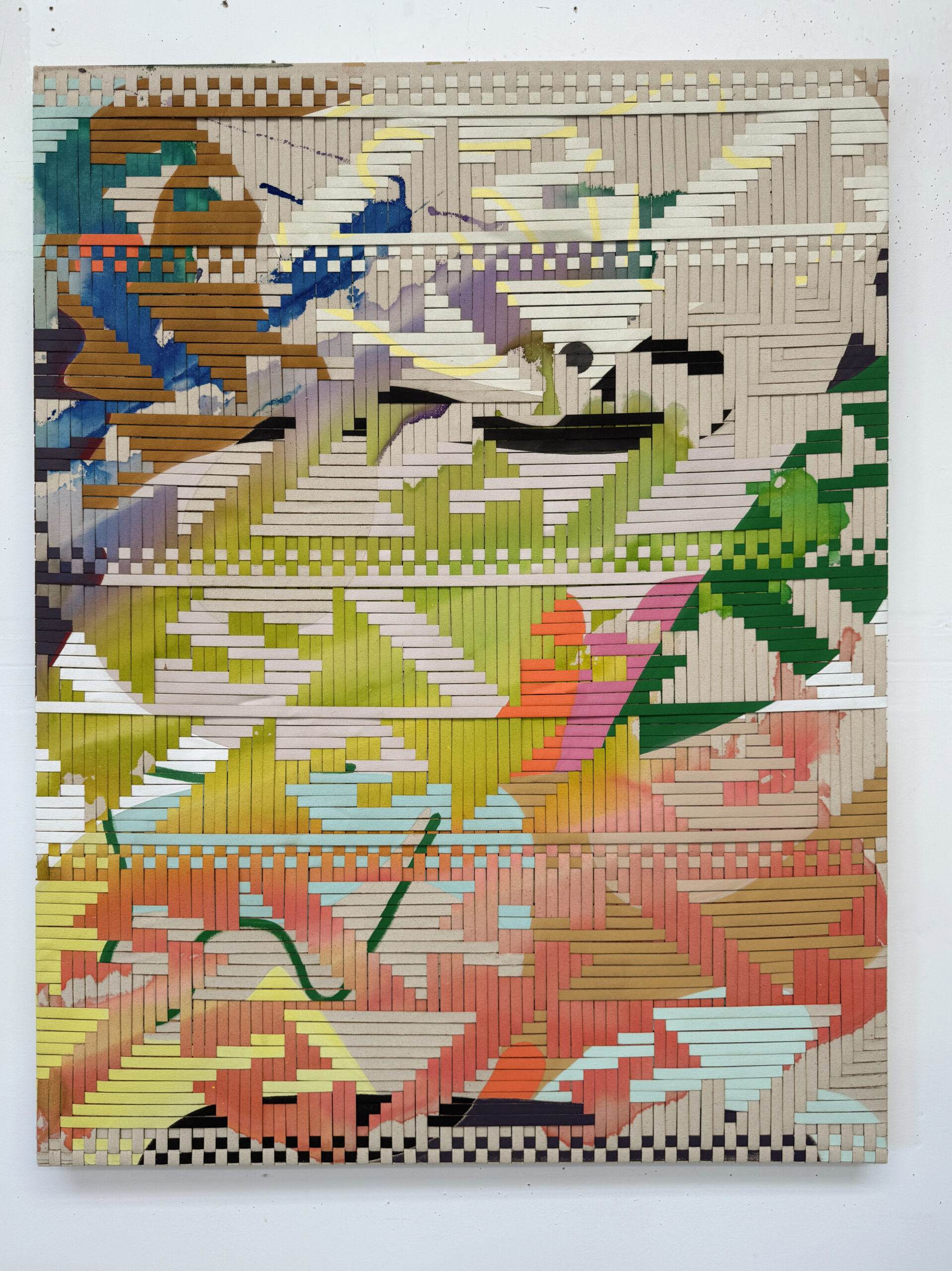 Miguel Arzabe is a Bolivian-American artist whose practice reimagines painting as a woven, dimensional surface. Working between abstraction and structure, he creates compositions that are cut, interlaced, and reassembled, resulting in works that oscillate between image and object. His process draws from both modernist abstraction and textile traditions, introducing a rhythmic interplay between precision and improvisation. Arzabe’s work has been widely exhibited and collected, and is noted for its distinctive synthesis of painting, pattern, and material construction.